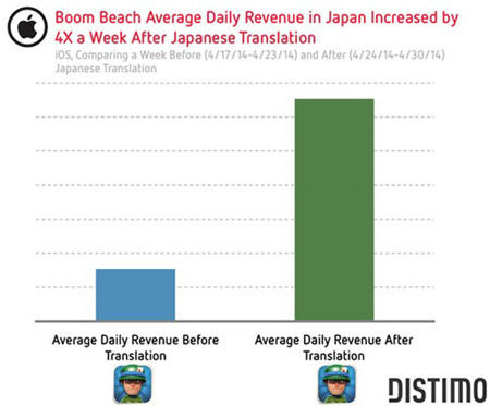我们注意到在Boom Beach在4月24日发布了日文版,极大地提升了下载量和营收。