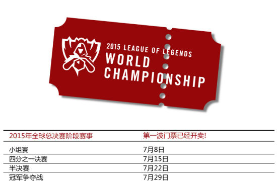 由于广大玩家对于今年世界总决赛门票的需求欲望极其高,Riot公司决定今年会分阶段售卖每轮世界总决赛的门票。从本月8号开始,玩家可购买每轮地区比赛的门票。