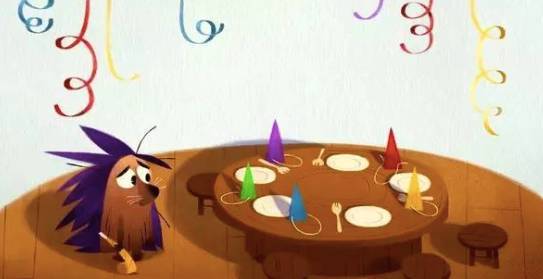 这是小刺猬 Henry 的生日party,到处都是彩带和气球,一片喜气洋洋,但是,没有朋友参加,它想拥抱气球也不做不到。当孤独的 Henry 看着你时,你会张开双臂的。