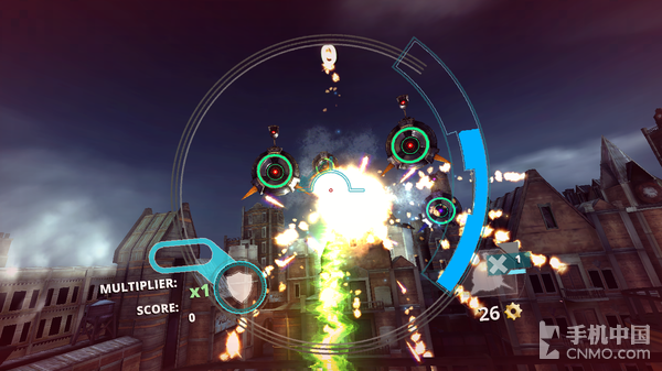 游戏以小镇被机器人占领为背景,玩家要做的就是尽可能多的击落GeoBot(游戏中移动头部控制准星自动射击),连续设计会获得更多积分。游戏具有成长机制,可以买武器、装备提升自己的能力。